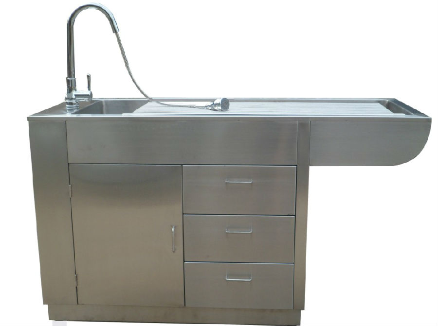 本宠物洗牙台采用:1.2mm材质304拉丝板制作;网格选用直径8mm为龙骨,横档用直径4mm交叉点焊.水槽圆角制作不会有死角清理卫生比较方便,漏水采用不锈钢虑毛漏水不会堵塞。 优点:使用方便,清洁卫生。