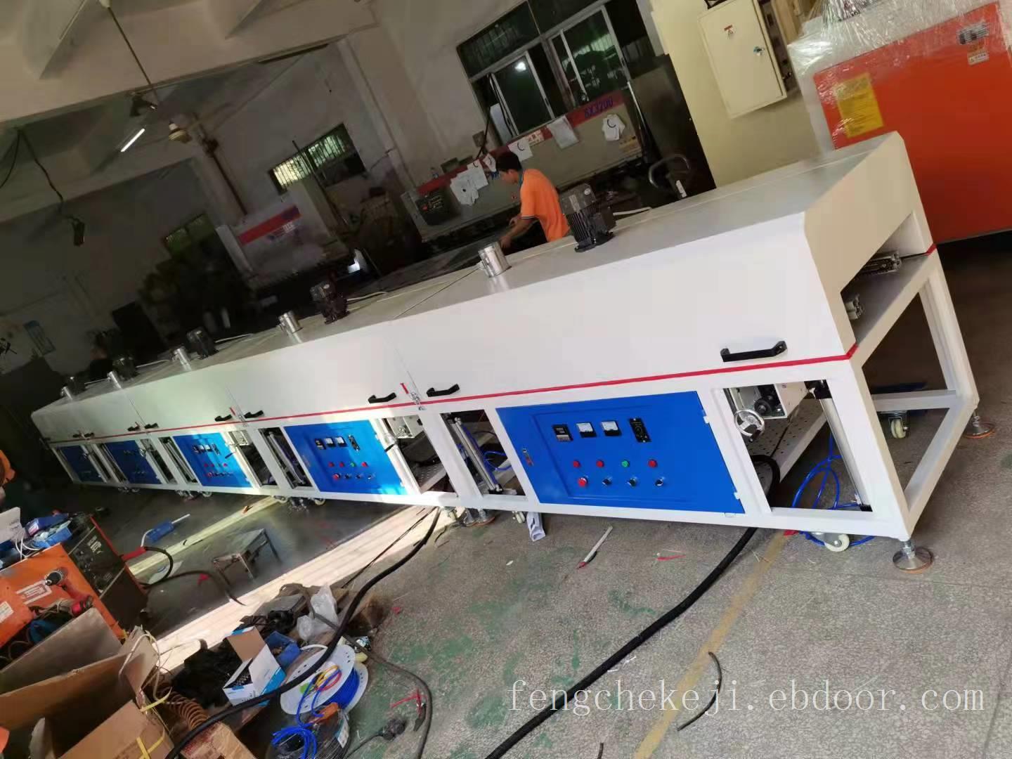 UVLED油墨烘干隧道炉通过光-热协同固化技术实现PCB油墨加工的突破性升级。其采用385-405nm波段UVLED光源,配合70-90℃低温烘干区,较传统汞灯固化能耗降低60%的同时,将油墨固化速度提升至15-30m/min(视油墨类型而定)。核心光学系统配备水冷散热模块,确保光源强度维持在1200mW/cm2±5%的稳定输出,有效解决汞灯固有的光衰问题(使用寿命达20000小时以上)。