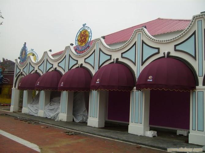 设计新颖、色彩靓丽、一篷多用,遮阳、挡雨、防风沙.在遮挡炎炎烈日的同时,能够使强烈的阳光 以反射光的形式反射入室内,让室内光线明亮而柔和.遮阳面料具有防紫外线功能,不仅使人体皮肤免受紫外线的侵害,而且能延长室内装修和家具的使用寿命.