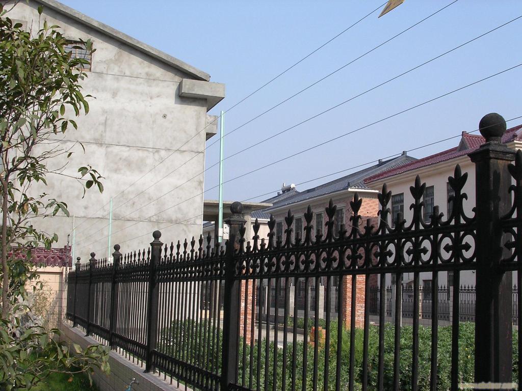 2、 围栏的安装 电子围栏按其在现场的安装位置,分为独立式,附属式和墙顶式三种基本安装形式。 独立式电子围栏,直接架设在地面上。其高度约2米左右,一般安装10-12根线缆。考虑到设备和人身安全,要求在独立式电 子围栏的一侧或两侧,安装不低于1.2m的防护墙或围墙。其间的净空距离应不小于1m。使独立式电子围栏正常工作部位处于一个公众通常难以接近的封闭区域 内。 附属式电子围栏附属在围墙上,附属式电子围栏主要用在有较高安全级要求而不占用外围土地的场合。对现有围墙有三点要求。一是围墙应有足够的牢度,能承受电子围栏的张力和压力。二是围墙的高度应不低于2m。三是围墙的网孔必须小于50mm,以免人手伸入,触及附属在墙内侧的电子围栏。墙顶式电子围栏,目前在中国较为普及,架设在现有围墙的顶部上方或侧方。可以垂直安装或倾斜一定的角度安装。电子围栏的高度为0.8m左右。