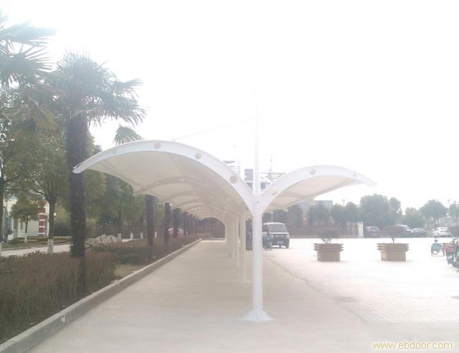 车棚由钢架和顶棚组成。钢架多由金属合金制造,质量轻且质地硬。