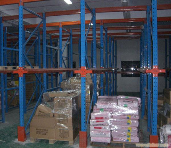 贯通式货架:适合存储大批量、品种少的同类货物,叉车可直接进入货道内存储货物,仓库利用率高。