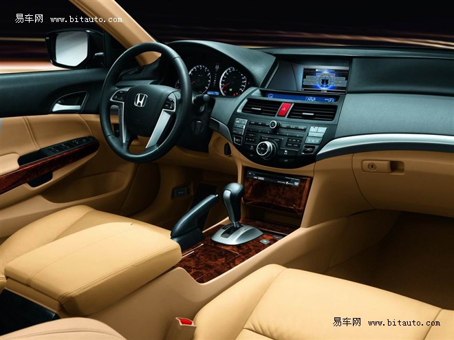 2013款雅阁采用了全新木纹的桃木装饰条,较之前车型相比,颜色更鲜活,光泽度更高。覆盖装饰条的部分主要集中在中控台、车门内侧扶手区、后排中央出风口等。这套饰物较旧款车型内部装饰,更具清爽感,好似置身于夏日午后的森林中。