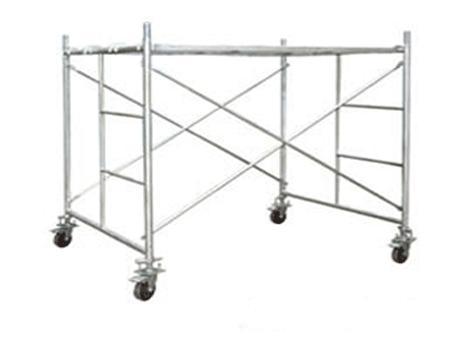 移动脚手架主要有主框,横框,交叉斜撑,脚手板,可调底座等组成。交叉拉杆又称斜拉杆、 是纵向连接两副门架的交叉型拉杆。杆件两端压扁部分冲有销孔,组装时与门架立杆上的锁销锁牢。表面处理:电镀(冷镀锌)、 浸锌(热镀锌)脚轮:又称为地轮,可安装在移动脚手架下部,组成移动式脚手架.可作为机电安装.油漆粉刷.设备维修.广告制作的活动工作平台.脚轮为6寸带刹车,具有使用方便.移动灵活.安全可靠等特点.