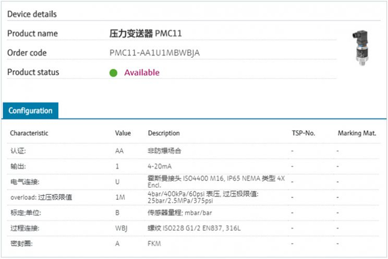 Cerabar PMC11是紧凑型压力变送器。带电容式非充油型陶瓷膜片传感器,表压测量范围为400 mbar...40 bar。PMC11能够在过程行业的标准应用中使用,采用高品质材料,例如316L,满足各类应用条件。