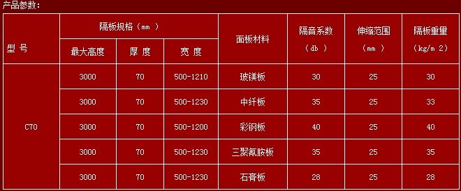 隔断厚度(mm):70 隔断高度(mm):≤3000