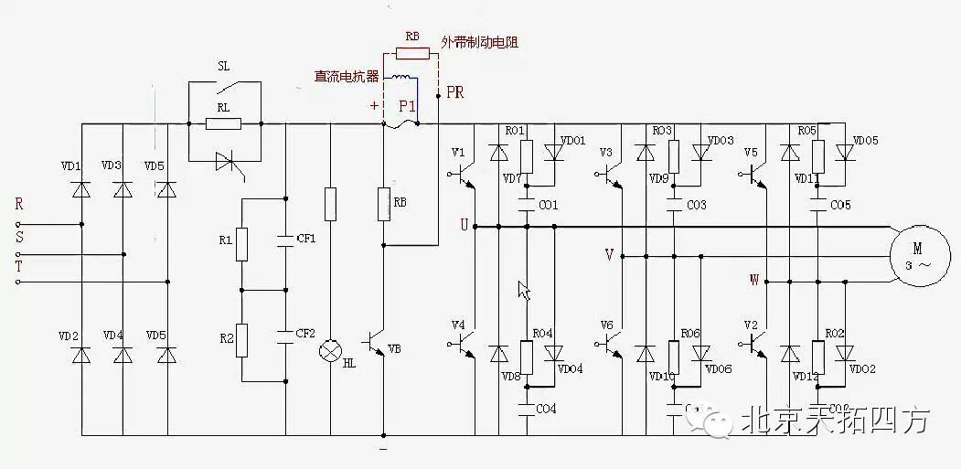 在整流器整流后的直流电压中,含有电源6倍频率的脉动电压,此外逆变器产生的脉动电流也使直流电压变动。为了抑制电压波动,采用电感和电容吸收脉动电压(电流)。装置容量小时,如果电源和主电路构成器件有余量,可以省去电感采用简单的平波回路。