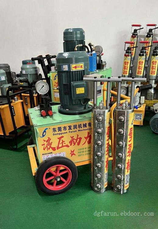 东莞市发润机械液压设备有限公司研制开发的新产品,劈裂机直接与挖掘机相连,劈裂机由挖机输出的超高压油驱动油缸产生巨大推动力,并经机械放大后即可使被分裂物体按预定方向裂开。