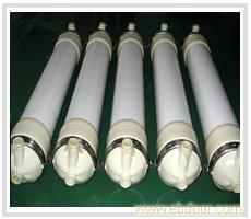 公司采用特种膜材料制作的耐高温、耐强酸碱、耐有机溶剂的中空纤维超滤膜,膜丝内径0.9~2.0mm,耐高温度280℃,耐受pH值1~14。适用于纺织行业,回收造纸工业中涂层材料,粘土浓缩,橡胶乳液浓缩,阴、阳极电泳涂装,淋洗碱液脱脂,光刻胶的应用,磷化液回用,去除酸液中的重金属物,回收有机溶剂中的催化剂,除色度、碱液回收,回收铜-EDTA络合物等方面。
