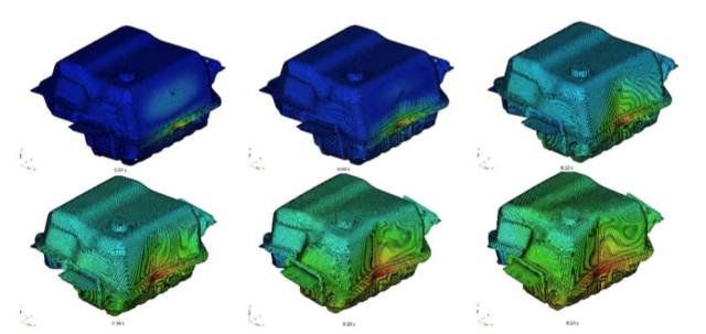 图 5. 电池包 X 方向挤压不同时刻位移云图