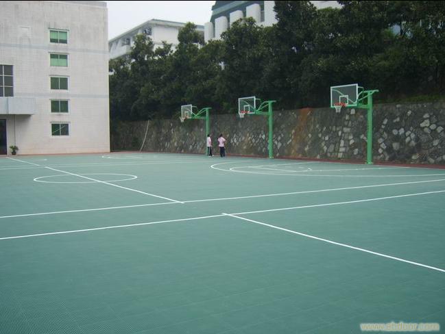 4、施工简便快捷:地板间以锁扣衔接,不需胶水和钉子固定。通常四人不到三小时即可完成一块标准篮球场地铺装或揭起。平时维护室外只需用水冲洗即可,室内使用拖把清洁,真正实现零成本维护。