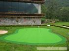 迷你高尔夫果岭是目前国外非常流行的一种休闲运动,高尔夫果岭即可建在绿茵旷野、山林幽谷间,也可建于房前屋后庭院内、屋顶平台上,还可铺设在室内休闲区。迷你高尔夫果岭是高尔夫球场的微缩版,精心设计的沙坑、草场不仅实用而且美观、高雅,对周边环境的档次有较大的提高,国内外很多宾馆、饭店、俱乐部、私人住宅内都建有迷你高尔夫球场,为休闲、商务洽谈、聚会等营造了又一种全新的高雅场所。