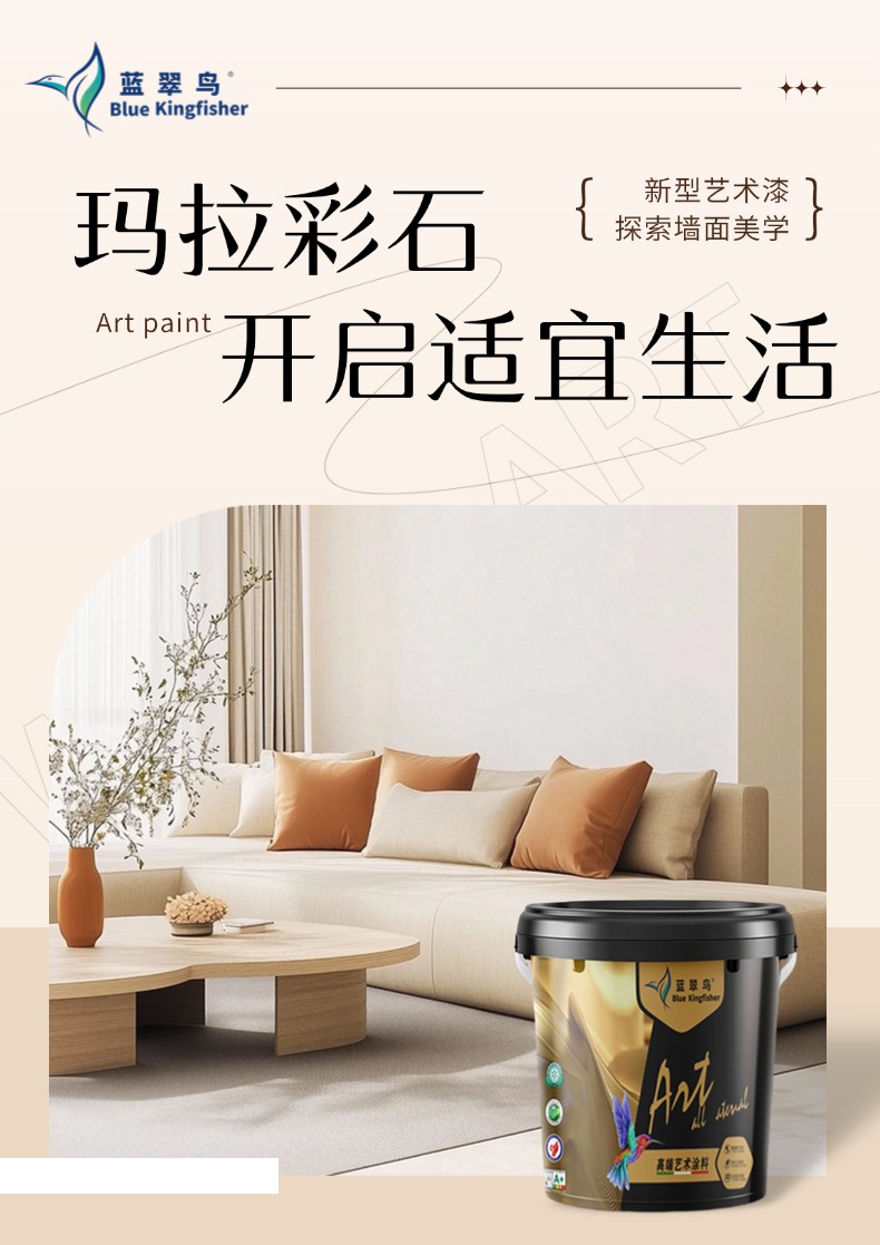 玛拉彩石作为一种新型墙面装饰材料,其原材料主要由无机干粉与天然煅烧彩石组成。这些天然彩砂经过大自然的长期雕琢,具有丰富的色彩和细腻的质感。生产过程中,蓝翠鸟运用前沿科学配方,将天然彩砂精心研制,采用先进的采砂干粉技术,确保每一批产品都能呈现出如天然石材般细腻逼真的纹理。