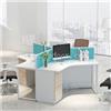 办公职员台材质 台面:环保三聚氢胺板饰面,抗硬度性能良好,板材厚度25mm,PVC胶边封边。