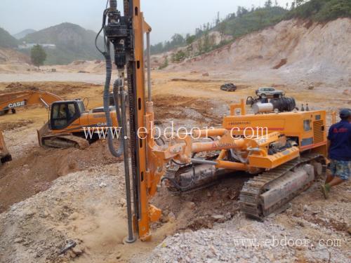 开孔时,先起动电动机,待转运正常后扳动操纵器的推进手把。使其得到适当的推进力,然后再扳动控制冲击器的手把到工作位置。凿岩工作以后,可以打开水阀,使气水混合物保持在有适当的比例。进行正常的凿岩工作。当推进工作使缷杆器移动到与托钎器相碰时,为钻完一根钻杆。要停止电动机运转和停止给冲击器送气、送水、把叉子插到托钎器的钻杆槽中,使电机反转滑板后退,使接头与钻杆脱开,再接第二根钻杆,按此下你循环连续工作。