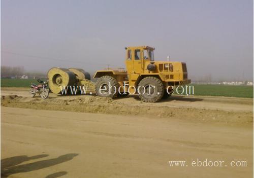 冲击式压路机通过装载机牵引,带动一个冲击轮,利用冲击轮自身的重量和前进时的冲击力,对水泥路面、路基进行破碎和压实。
