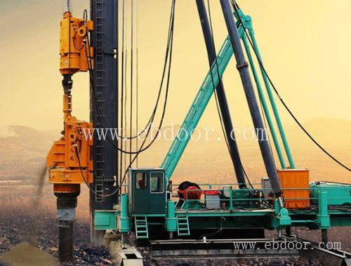 回旋钻机一般适用粘土,粉土、砂土、淤泥质土、人工回填土及含有部分卵石、碎石的地层,对于具有大扭矩动力头和自动内锁式伸缩钻杆的钻机,可以适应微风化岩层的施工,为满足施工要求,旋挖钻机底盘和工作装置的配置具有装机功率大、输出扭矩大、机动灵活、多功能、施工效率高等特点,目前,旋挖钻机的钻孔直径为3m,钻孔深度达120m,(主要集中在40m以内),钻孔扭矩620kn.m。