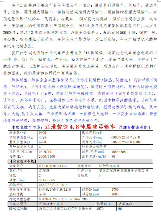 江淮骏铃爆破车-厢体全金属整体骨架式-质量上乘客户满意