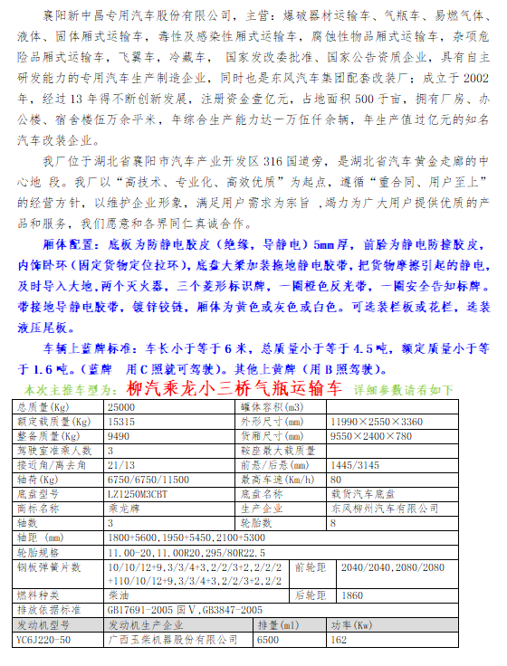 柳汽9.6米大车厢可按液压尾板-气瓶运输车价格