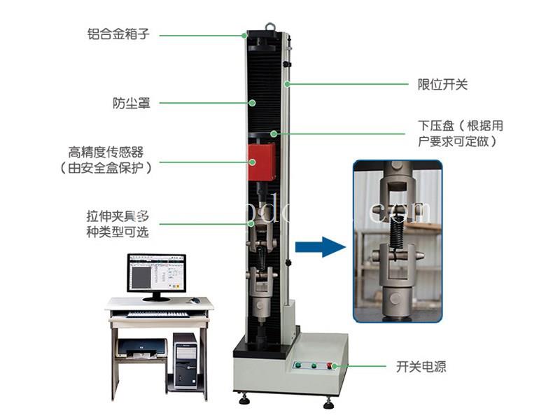 弹簧试验机参照标准《JB/T 7796-2005 弹簧拉压试验机》本标准规定了弹簧拉压试验机的术语和定义、要求、检验规则、标志和包装等内容。全自动数显式拉压试验机是适用于拉压试验的新型试验设备。试验机主机的设计具有外形美观、操作方便、性能稳定可靠的特点。试验机采用数控电机及先进的单片机控制技术加载及控制,能实现双速预置。实现了高速逼近,低速采集。提高了测试精度,保证了试验效率。