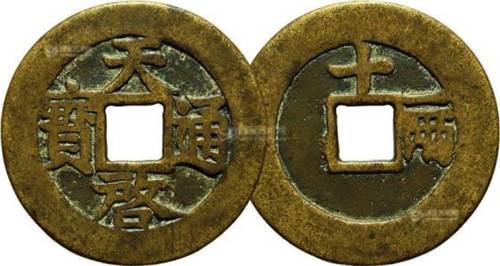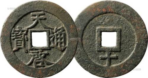 据周新国先生的'武陵藏珍'记载:'天佑通宝'钱是元末农民起义首领张士诚所铸。张士诚,泰州白驹场(今江苏东台境)人。1353年,率盐丁起义,占领高邮,踞承天寺为宫,国号大周,自称诚王,改元天佑。他毁铜佛像铸'天佑通宝'钱,有小平、折二、折三、折五四种。正面为楷书,背面为篆书,皆纪值。今见钱文从'佑'不从'佑'。彭信威《中国货币史》认为'这是史书的错误,天佑乃唐的年号。'邱思达《古钱百咏》则认为'二字可以通用'。