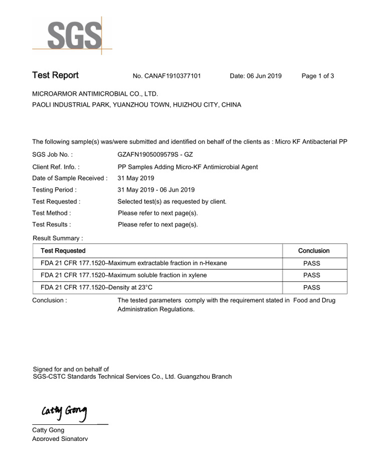 本抗菌母粒证书齐全,欢迎咨询合作,目前与我司合作的客户,使用后产品均能达到抗菌标准,且出口至欧美市场。