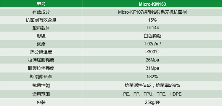 Microarmor抗菌母粒是以PE塑料颗粒为载体,将银 系无机抗菌剂均匀混合而成的抗菌母粒。其为粒度 均匀的颗粒,具有极低的吸湿性和很高的耐热性, 在纤维、薄膜及塑料树脂成型品中混合更加均匀, 可完全避免抗菌剂团聚的情况,同时,加工也更加 干净,不会刺激生产工人鼻粘膜、皮肤。其物理化 学性能十分稳定,使用过程中还是使用过程都具有 秀优的耐染色和抗变色性能。同时,也具有很高的 安全性,通过多项环保安全测试。