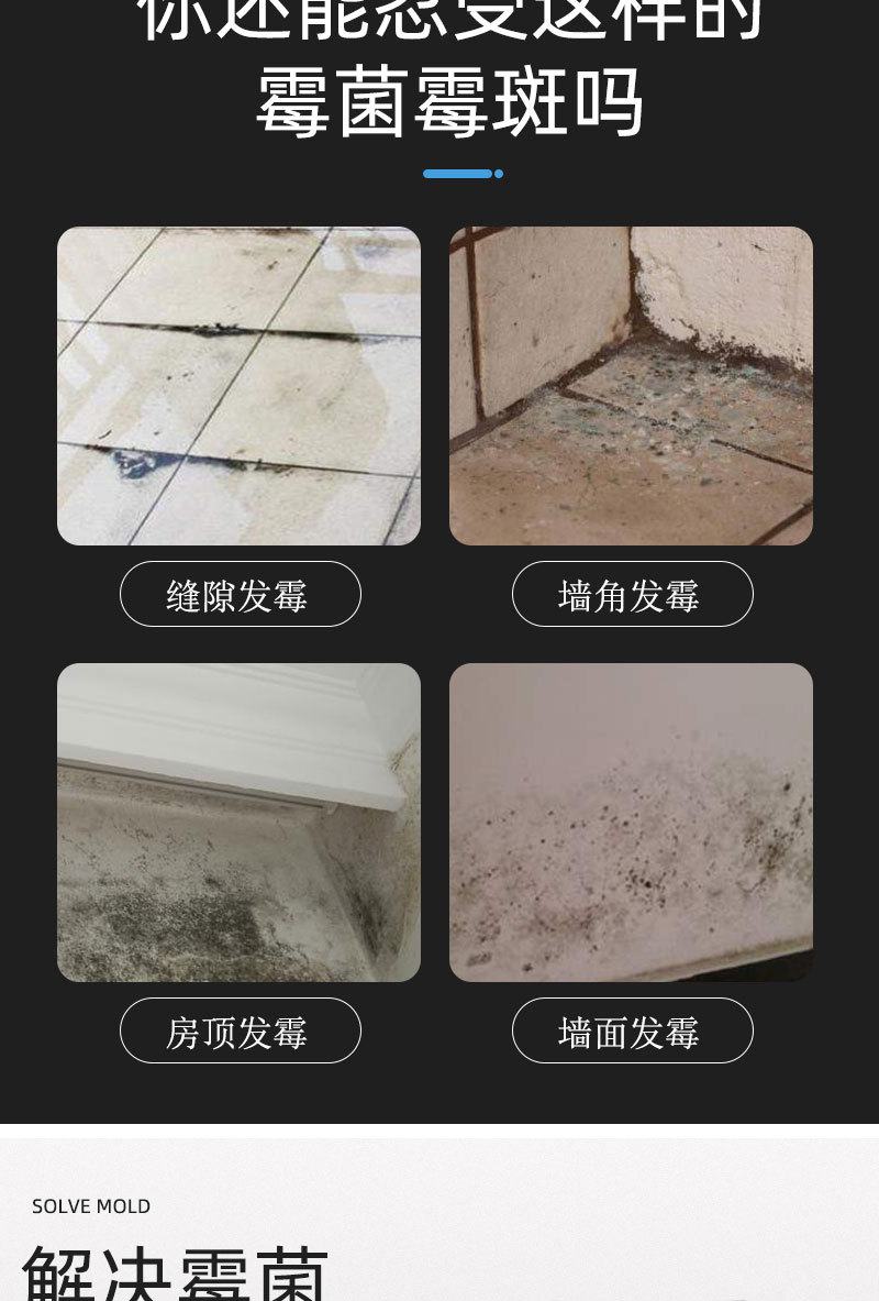 有效解决缝隙发霉、墙面发霉、天花板发霉等等各种恼人发霉问题、