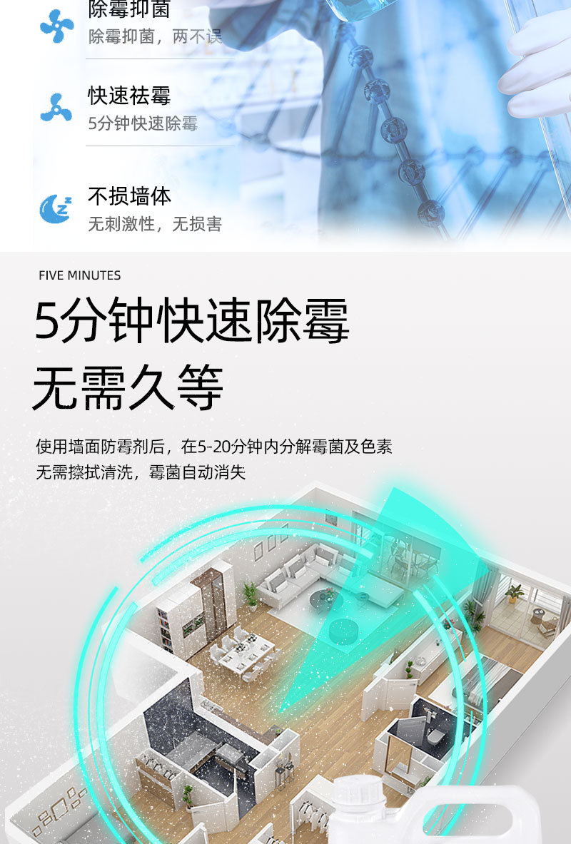除霉剂强效渗透,5分钟去除霉斑且不伤墙体;