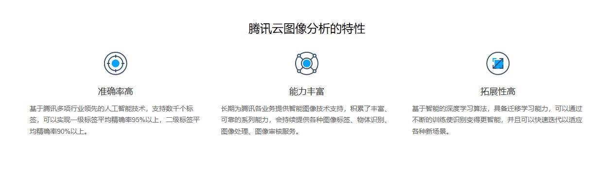 腾讯云图像分析为您提供综合性的图像理解、识别等服务。可以识别数千个图片标签,包含商品、日常用品、动物、植物等,支持根据需求定制标签。能够满足推荐系统、相册分类、商品推荐等使用需求;基于图像分析,还可以帮助客户完成去模糊、画质增强、图片质量评估等任务,适用于素材美感评价、平台内容质量提升、自拍娱乐等场景;支持图像违规内容识别,可以分析出图片中是否存在政治敏感、暴力恐怖等元素,维护用户体验。