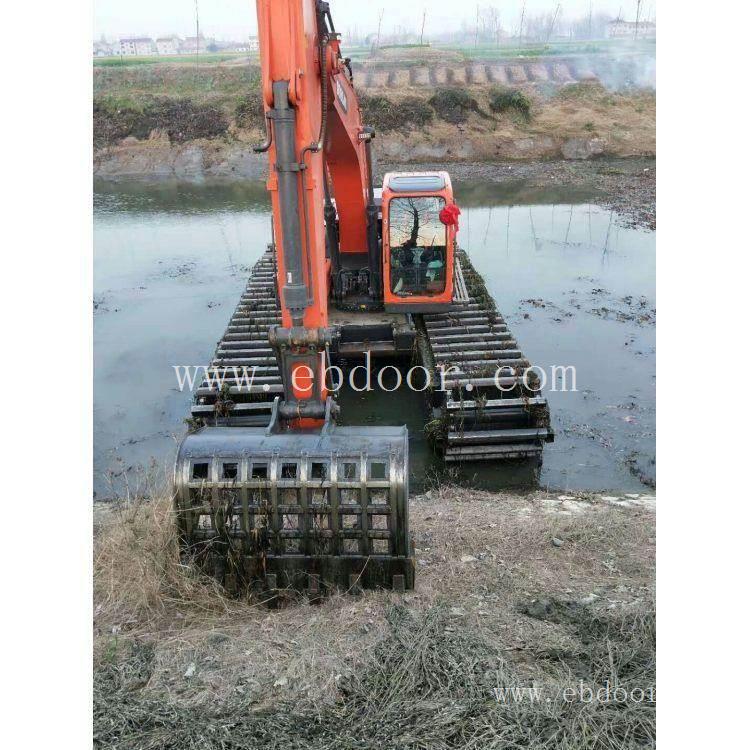 改装的水陆挖掘机是一种适用于陆地、沼泽软地面及浅水作业的多用途挖掘机,是专门为工程船舶及常规工程机械无法进入和施工的沼泽地,海涂,淤塞沟渠等区域进行开挖,清淤而研制的,是一种可自行出入泥沼,水域及河坡堤岸的超低比压挖掘机, 可在一百五十厘米以上的水面上和淤泥,沼泽地作业,广泛使用于水利工程、城镇建设中的河道清淤、修堤渠道、鱼池开挖和水域治理湿地沼泽及江、河、湖、海、滩涂的资源开发和环境整治。其中对外承接工程包括:河道清淤;围堤加高;加固;修路;开发大、中、小型湖泊切块;鱼池升级改造等工程业务。