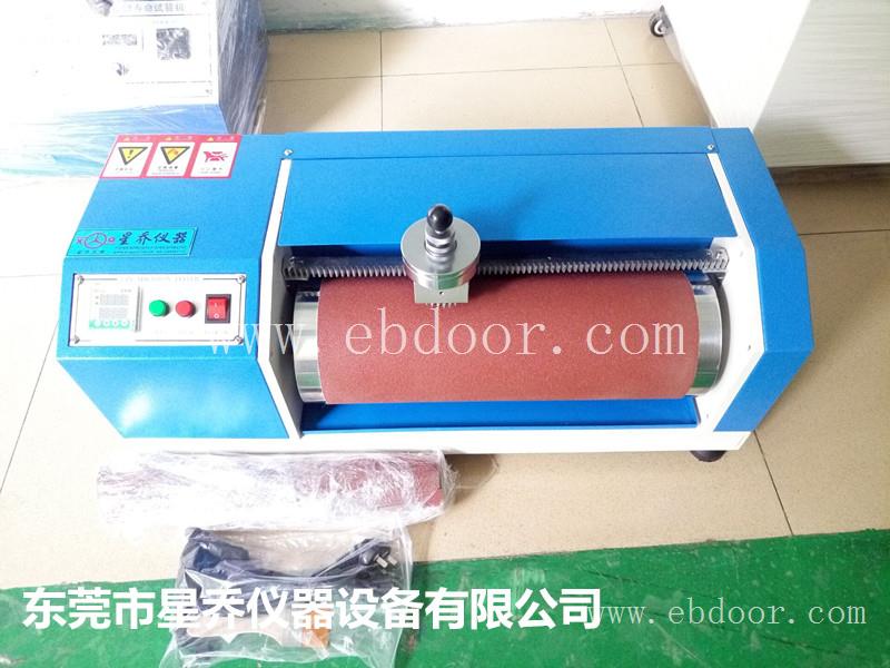 在规定的接触压力下和给定的面积上,试样与砂纸成一定角度,测定试样在一定级别的砂纸上进行摩擦而产生的耐磨性,砂纸包贴在滚筒的表面,试样紧压在带有砂纸的滚筒上,使试样沿滚筒横向移动,磨耗是在圆柱型试样一端产生,测量试样的质量损失值,并且试样密度计算体积磨耗量。