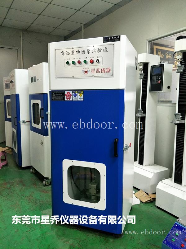 将电池按照4.5.1规格的试验方法充满电后,装电池置业于平台表面,将直径为1.58mm±0.2mm的金属棒横置在电池几何中心上表面,采用质量为9.1kg±0.1kg的重物从610mm±25mm的高处自由落体状态撞击放有金属棒的电池表面,并观察家6h,电子产品电池耐冲击测试机 冲击测试机报价。