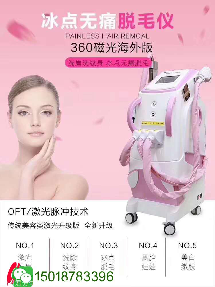 激光洗眉机: 1.有效祛除各类纹眉、绣眉、纹身、纹眼线及唇线。 2.专门祛除红色、蓝色、咖啡色、褐色及各种彩色纹身。 3.祛雀斑、老年斑、胎记、太田痣等色素性皮肤病等。 4.即时嫩肤,光彩立现,美白去黄,终结色素,收缩毛孔,紧致肌肤,消除黑头,抑制痤疮。 洗眉机功能简介 多功能E光激光一体机,采用新光电技术,由E光美容系统和激光治疗系统结合而成。主要用于祛除部分内源性色素性皮肤病变、外源性色素性皮肤问题及外伤性色素沉着、各种色斑;祛除各种颜色的纹身;有效祛除各类纹眉、纹眼线及唇线;治疗血管性组织病变;改善毛孔粗大、皮肤粗糙、细小皱纹、回复皮肤弹性;脱去全身各处不雅毛发(生长期的毛发),包括颜色较浅的细小毛发;收紧肌肤,深层除皱;增进皮肤新陈代谢,美白肌肤。