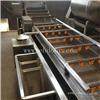 解冻线为保证槽体内部卫生清理方便,槽体内部支撑采用高强度方管,实现无缝焊接,不留卫生死角,解冻线主要针对各种肉制品的前期处理加工,整机分为气泡清洗段跟喷淋清洗段两部分组成,采用蒸汽加热,设备底部设有蒸汽管道对清洗池内的水均匀加热,温度可调控,输送采用变频调速电机,速度可调,可针对不同的产品进行调节,解冻线整机设计为独立内胆结构,外形框架焊接而成,结实耐用,增加设备使用寿命,内胆结构的优点首先便于清洗,保证设备的清洁度。
