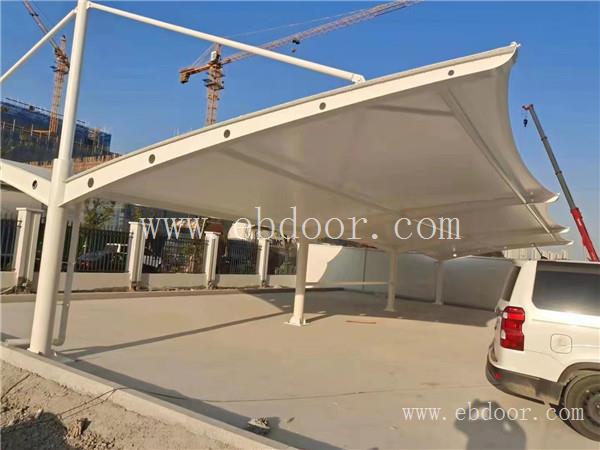 屋顶膜结构雨棚,第三,膜材料的半透明性确保了适当的自然漫射光照亮内部,第四,膜结构具有传统屋顶所没有的艺术造型,膜结构充电桩雨棚具有以下主要特点:,1、重量轻、跨度大,2、透光率好,随着薄膜结构的发展,常用薄膜材料的强度越来越高,采用高强度薄膜材料,可有效抵御大量紫外线,有效保护车辆,其透光效果达到20%,在膜结构顶棚的遮光下,充电桩依旧充满了光亮,透过膜结构的阳光变得柔和,大大降低了车辆因长期阳光照射而老化的现象。