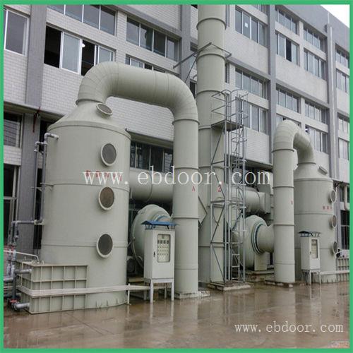 5uzfga一般选用高强度优质碳钢,厚度在5-10mm左右。内部喷砂除锈后,内衬玻璃钢防腐。固化后用环氧乙烯基水泥镶花岗岩,厚度约150mm。花岗岩的厚度一般为30mm,使设备塔具有高耐腐蚀、耐高温、耐磨损、高粘结性能。设备中的喷淋层采用玻璃钢字母管喷淋分布器,增加了喷淋覆盖面积、烟气与浆液的接触范围,促进浆液对硫化物的吸收。顶部采用双层挡板除雾器对处理后的烟气进行有效脱水除雾,设置定期反冲洗装置,按设定时间用工厂工艺水或自来水冲洗,避免除雾器板结晶堵塞。