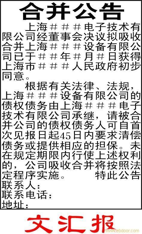 律师声明刊登,上海合并公告,上海注销公告,