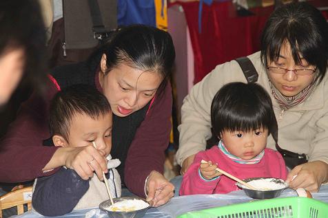 当然感恩盛宴可是名不虚传的色香味俱全的!除了温情的感动,趣味也是相当带劲的!瞧,我们的“小将”们救起“火鸡”来真可谓是积极神勇啊。钻的钻、爬的爬、跨的跨,哈哈,“火鸡”都被簇拥起来啦,再加开怀大笑声相衬托,场面气氛甭提有多热闹了。更妙的是还能和家人一起去“火鸡蛋糕坊”亲手制作蛋糕呢。瞧,这一家家的打的打蛋,搅的搅拌,宝贝还在旁边直嚷着加点葡萄干……真是一家老小齐上阵,忙得不亦乐乎。几分钟后香喷喷的蛋糕就出炉了,看,吃得多香呀,还在喂给爸爸、妈妈吃呢,好不温馨哦!怎么样,今晚爽到家了吧?吃的、玩的、看的一应俱全,还有得带回家呢!拿上大红的爱心气球,美美的来张全家福,真是爽歪歪啦!