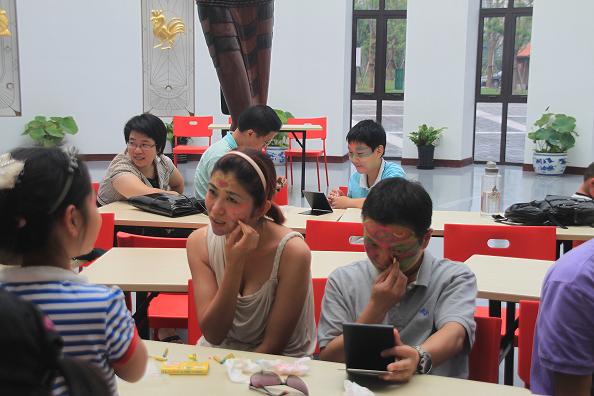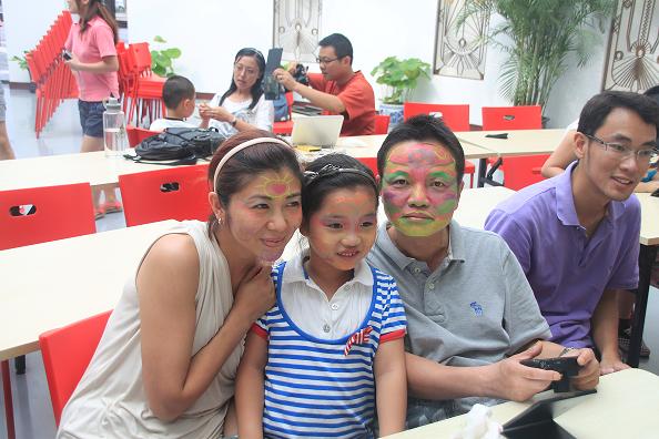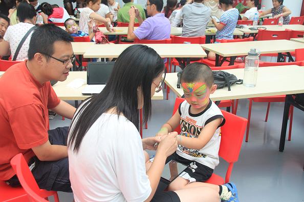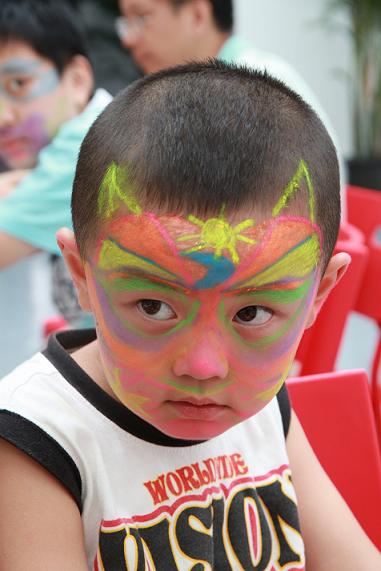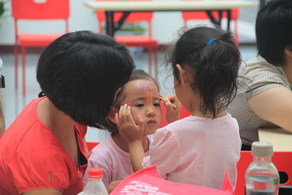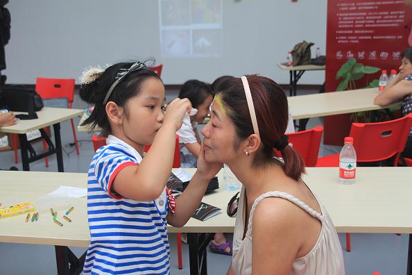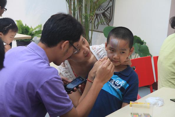 最后,也就是最精彩的环节--脸部彩绘啦!爸爸妈妈尽情想象,用无毒无味的京剧油彩在孩子脸上绘制生动的脸谱,印第安土著、非洲巫师、京剧人物、非洲草原的主人,快来看看猜猜我画的是什么?我们玩的可是非常有意思的行为艺术哦!