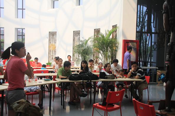 做完好玩的游戏后,我们参观了国际民间艺术博览馆,观赏了二三十年代的拉洋片,了解了古老京剧的一招一式的意义,还见到了像鸽哨样悠扬作响的风筝。在中东馆,立体电影让我们如坐飞毯般身临其境的感受了中东的神秘魅力,在非洲馆,借助多媒体,我们亲身体会了非洲大草原的大迁徙,还敲着鼓点与非洲土著共舞呢。