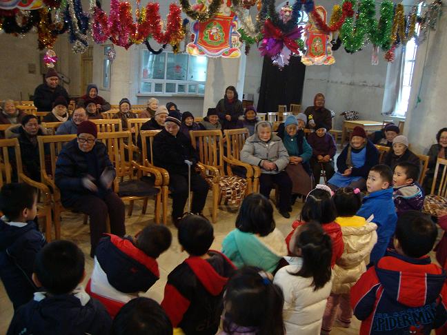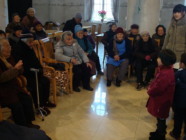 2012年1月18日我们虹越瑞宝冬令营的小朋友们在教师的带领下一起来到了光启安老院,送去了我们最纯真的笑容和最美好的祝福!