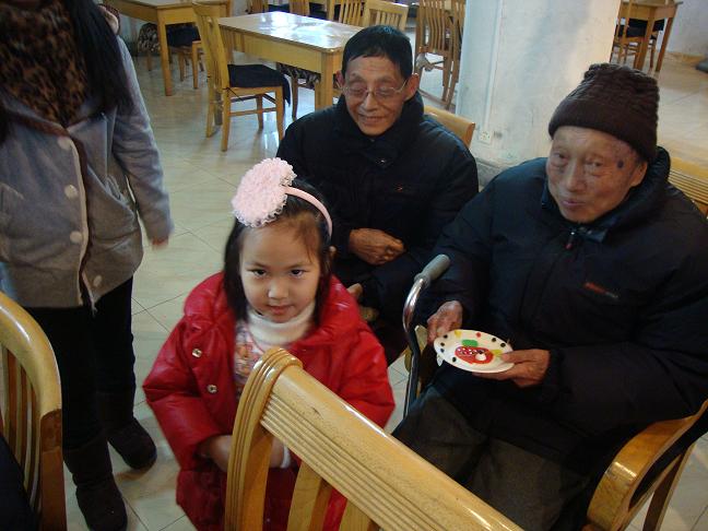 一到安老院,爷爷奶奶们都出来迎接我们了!而我们也给慈祥的爷爷奶奶们表演了歌曲等节目,“树上许多红苹果……”、“我的家有三个人,你的家有几个人?……”歌曲一首接着一首!接着,我们又为爷爷奶奶送上了我们用橡皮泥精心制作的“鱼”,祝福着我们的爷爷奶奶们长寿安康、年年有余!
