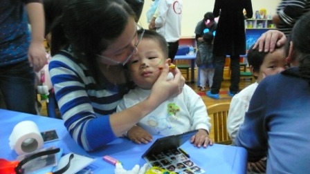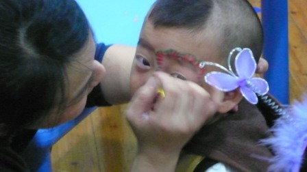 老师在给我装扮呢 妈妈要把我画成小花猫