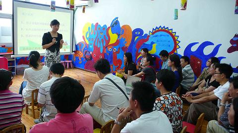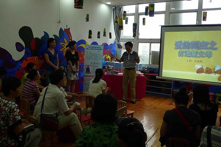 在综合党委陈立雄主任的热情洋溢、风趣幽默的一段讲话之后,丛老师给家长们做了“爱的回应——打造新父母”的讲座。讲座上,家长们两两组合,一个扮演家长,一个扮演孩子,“孩子”闭上眼睛,由家长带着在教室里走一圈,如何避开椅子、避开其他人,顺利走完,“孩子”全要靠家长指引,就像孩子在成长过程中,将自己全然交给家长一样。如何既引导,又放手,让孩子和家长都享受到成长的乐趣,这是每个家长都渴望了解的。丛老师在讲座中给我们分享她的心得。