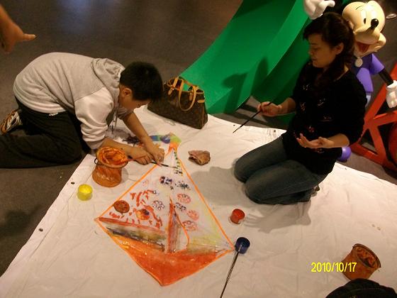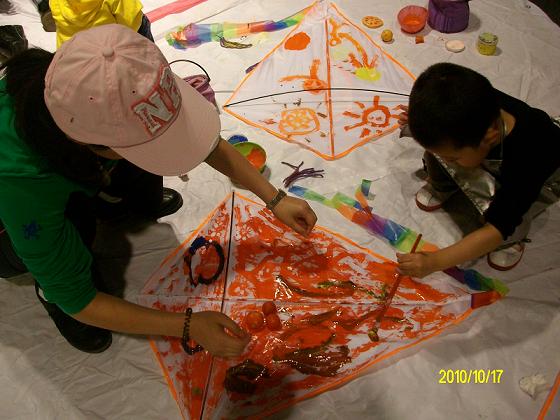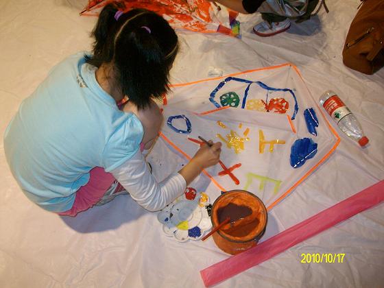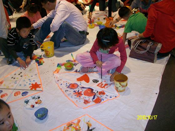 精美的动漫画面满满的溢在脑海里当然需要来抒发一下罗!瞧,我们的白版风筝在这些充满创作灵感的巨心绘匠手下已成为了一幅幅色彩斑斓的画卷。美餐后的场景更是让人目不暇接:瞧那飞速运橘子的父子两,还有那转圈后分不清东南西北的妈妈,把人都给笑翻了。为了寻宝,我们有的家庭组可真是“豁出去”了——脱掉鞋袜,赤脚上阵!不错、不错又是“宝贝”又是奖品,今天可真是满载而归啦!最后让我们一起来放飞美丽的风筝,放飞我们美丽的心情!