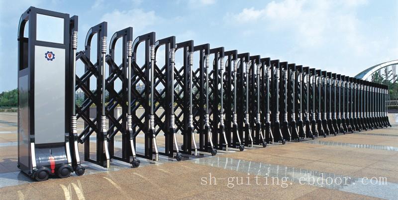 电动伸缩门主要由门体、驱动器、控制系统构成。伸缩门的门体采用优质铝合金及普通方管管材制作,采用平行四边形原理铰接,伸缩灵活行程大。电动伸缩门的驱动器采用特种电机驱动,蜗杆蜗轮减速,并配有手动离合器,停电时可手动启闭,伸缩门的控制系统有控制板,按钮开关,另可根据用户需求配备无线遥控装置。