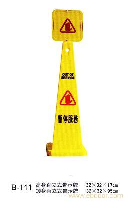 性能特点:全新优质塑料和注塑成型。外观光洁平整,精美厚实,稳重大方。产品不老化变形,高温暴晒及低温严寒情况下使用,一样历史如新。警示牌与锥体结合紧密牢固。图案及字样清晰明。配有中英文字体,款色多种多样。适用于宾馆。酒店及各类公共场所使用。欢迎客户来样字样。