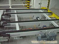 链式托盘输送机是立体库出入系统中常用设备,它承载能力大。主要用于托盘的运输。