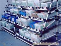 流水装配线中转货架特点:塑料涂覆管,可以通过标准连接件组成任意种类的器具,安装和拆卸容易,是一种柔性的工位器具系统。制成品结实耐用,耐腐蚀。特殊材料可以实现防静电功能。多种配件选择,扩展使用功能。功能:货架移动方便,流动作业,货物自动滑移,配合零件周转箱应用。